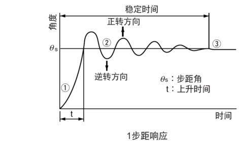 5)低頻振動特性 步進電動機以連續的步距狀態邊移動邊重復運轉。其步距狀態的移動會產生如下所示的 1 步距響應。