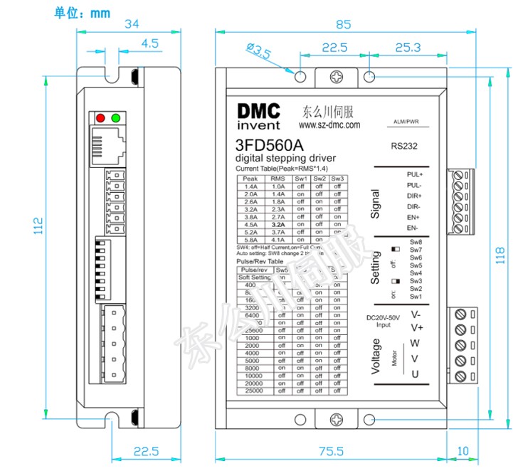 型號:3FD560A 名稱:3FD560A低壓三相步進電機驅動器 簡介: